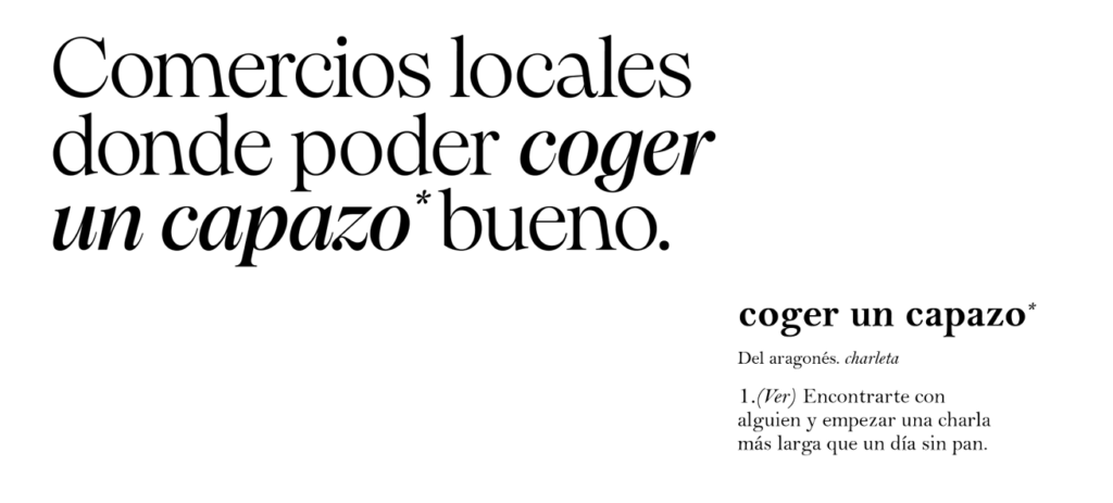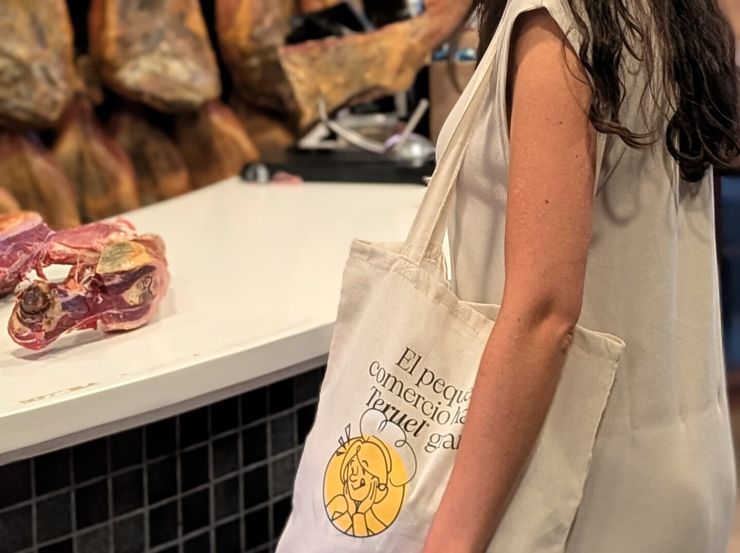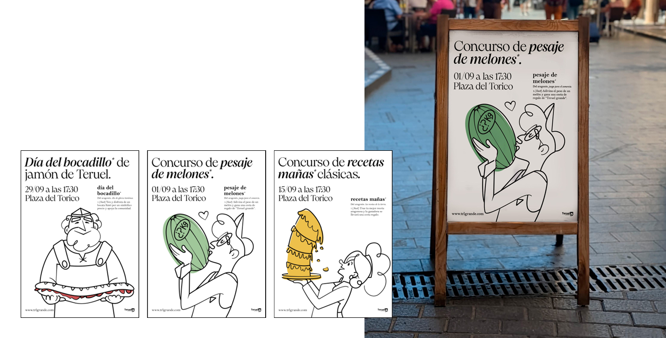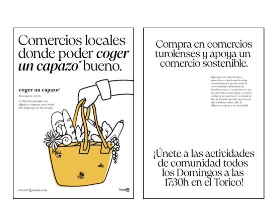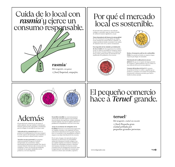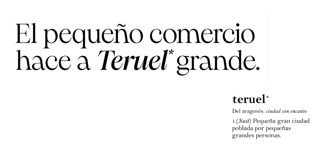 El eslogan de la campaña, contrapone el pequeño tamaño de Teruel con la palabra Grande como consecuencia del comercio.
